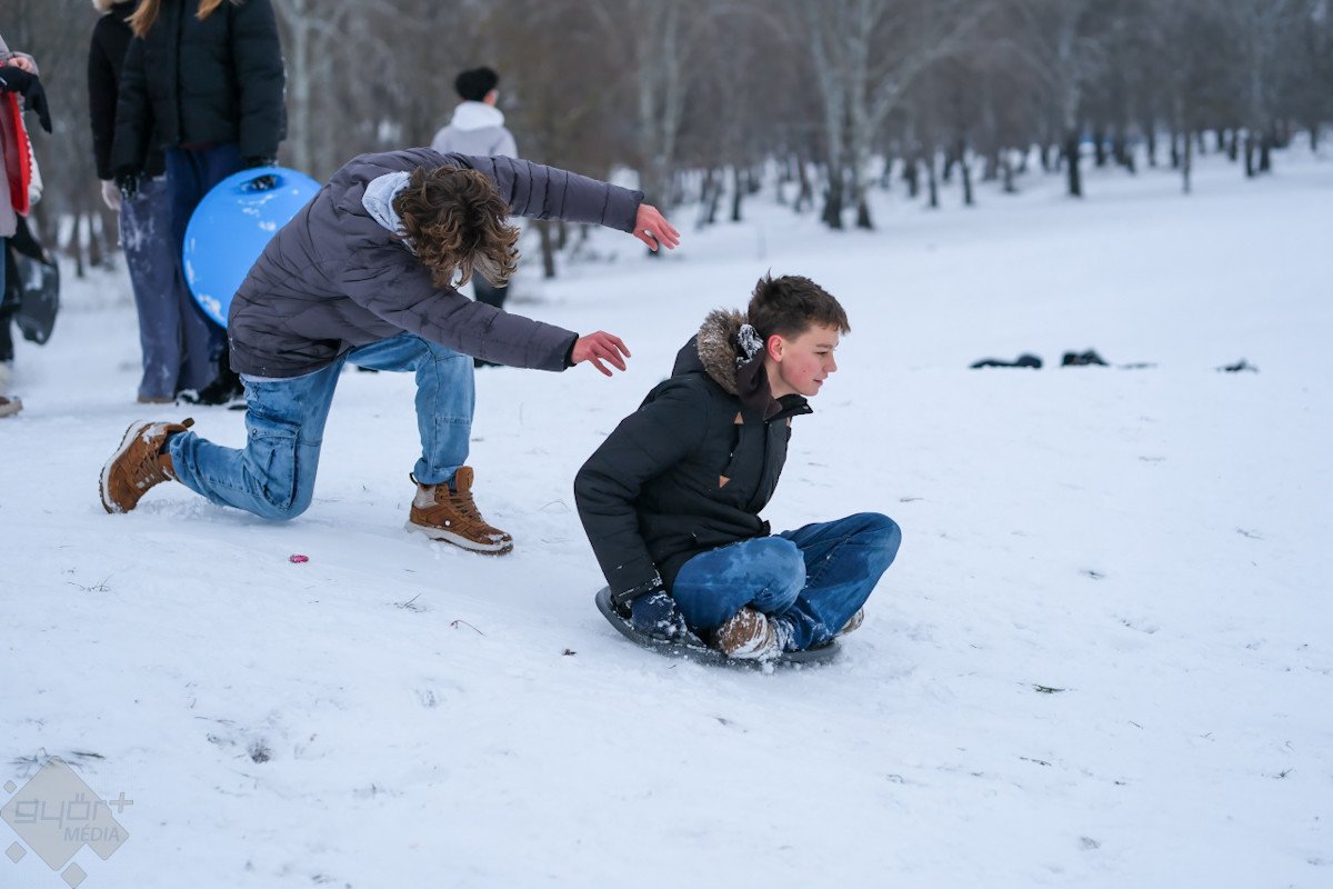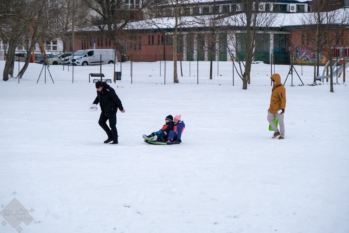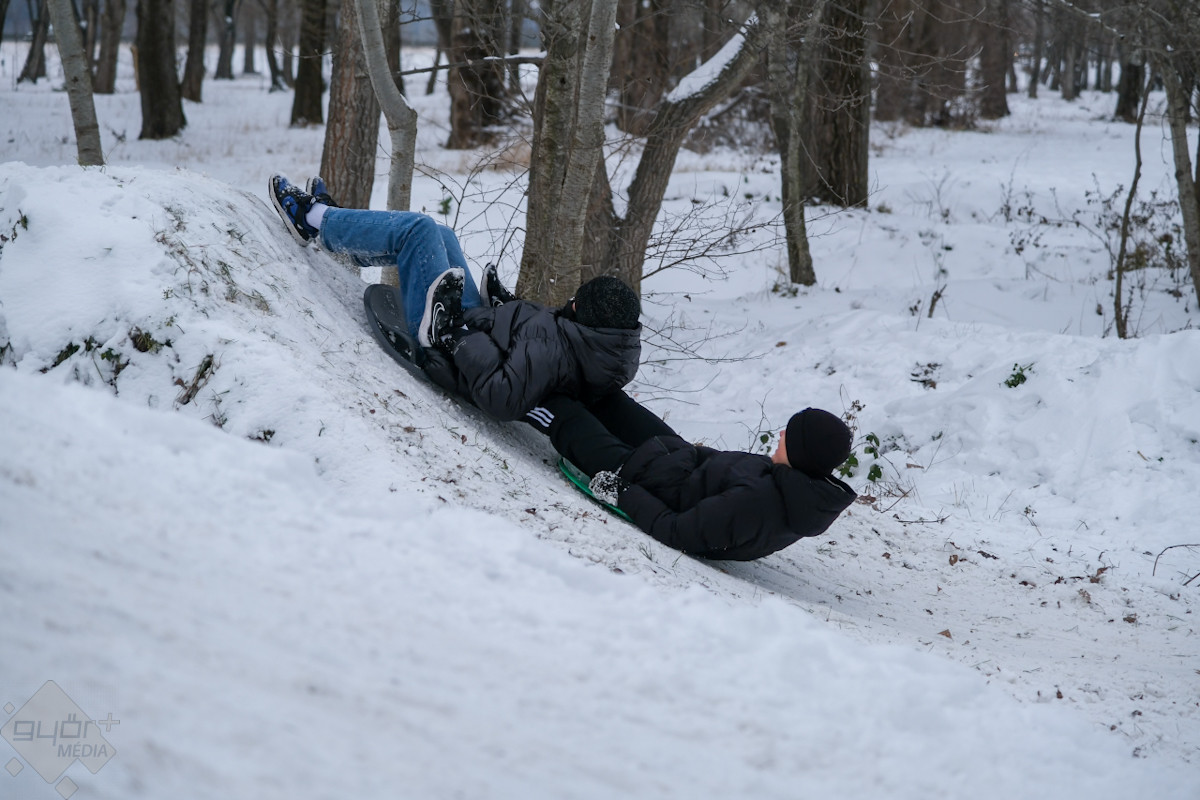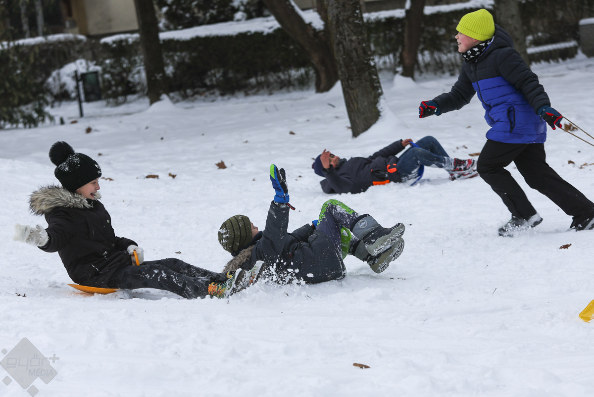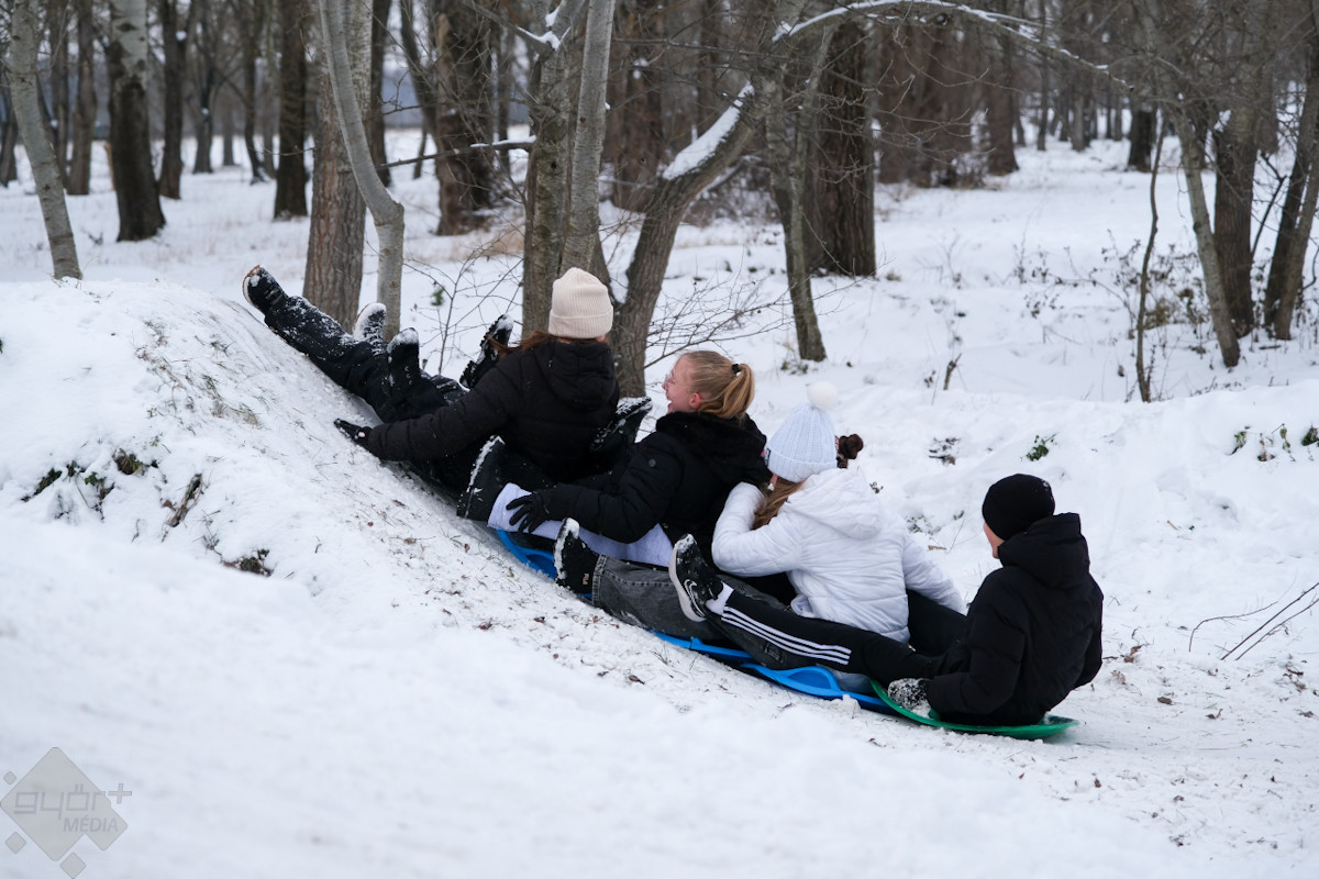 A téli havazás Győrben igazi öröm a gyerekek számára. Az Aranypart és minden lejtősebb dombocska most szinte szánkóparadicsommá változott, ahol mindenki előveheti rég elfeledett hójárgányait a padlásról vagy a pincéből.