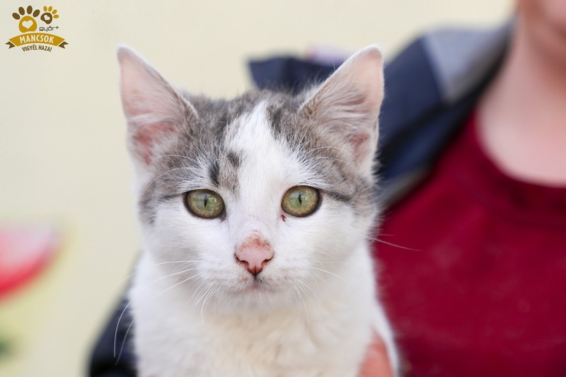 Rózsaszín nózi, nagy, zöld szemek, gyönyörű, bársonyos szürke-fehér bunda és bújós, barátságos jellem – mindez azonban eddig mit sem ért, hiszen Nusi, a négy hónap körüli kislány jelenleg is a Győri Állatmenhelyen várja, hogy eljöjjön érte a gazdi.