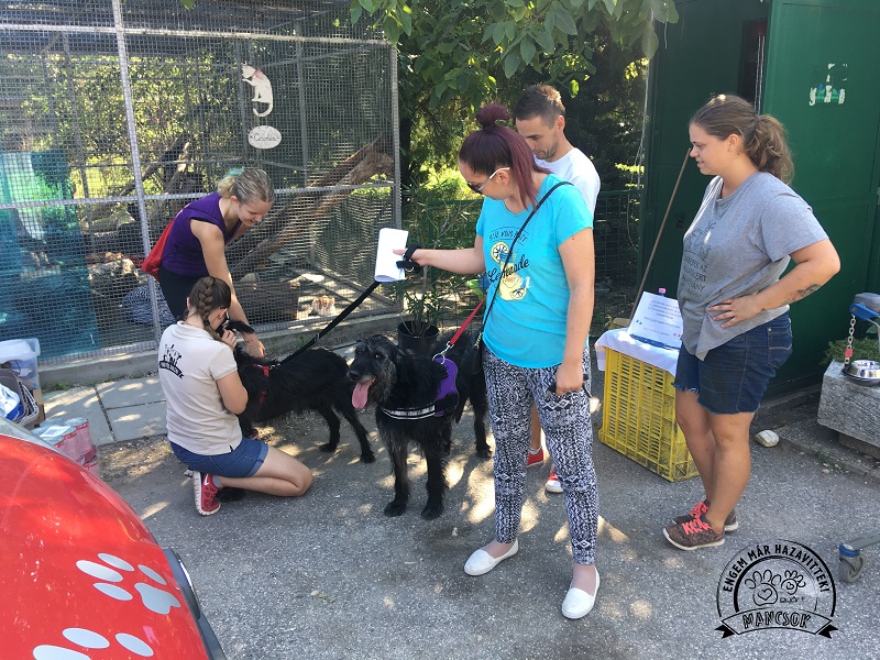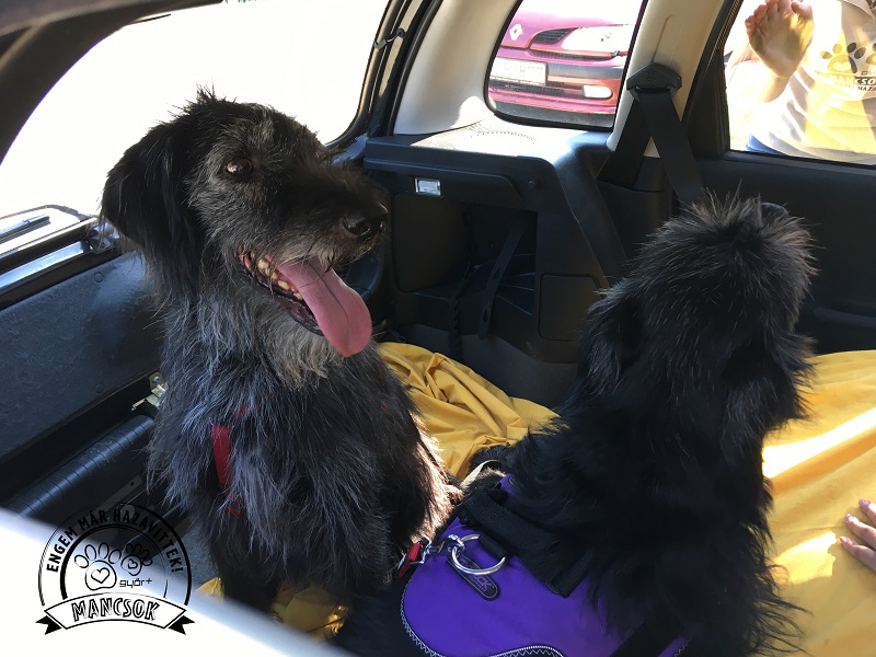 Aztán visszaértünk a menhelyre. Csinos hámot kaptatok: pirosat és lilát. Jól állt nektek. Hosszú percekig öleltük még egymást, majd puszival nyugtáztam, hogy most már mennetek kell, vár rátok az új otthonotok. Berci, te nagyon bátran beugrottál az autóba, Merci, téged mi segítettünk be, mert féltél. Drágaság, nem kell félned többé, már biztonságban vagy – mondtam, majd végignéztük, ahogy egy autóval és a gazdikkal elindultok a boldogság felé vezető úton. Bár nem volt könnyű búcsúzni, ez volt életem egyik legcsodálatosabb napja, és biztos vagyok benne, hogy a tiétek is. Az emberek kérdezgették, hogy hová mentek. És én végre azt mondhattam: HAZA!