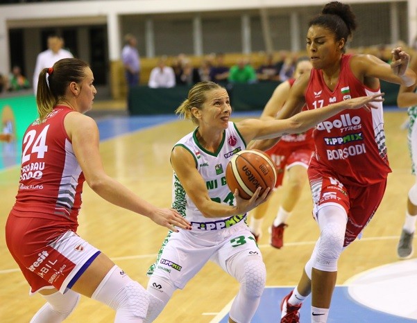 A bajnoki negyedik győriek az első negyed végén még hátrányban voltak a portugál Olivais együttesével szemben, de végül könnyedén nyertek. A Rába-partiak legjobbja a szlovák Zofia Hruscakova lett 18 ponttal.