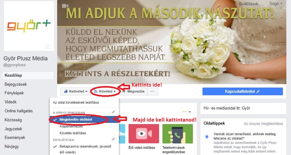 1. Először is, látogass el a Győr Plusz Média Facebook-oldalára!
