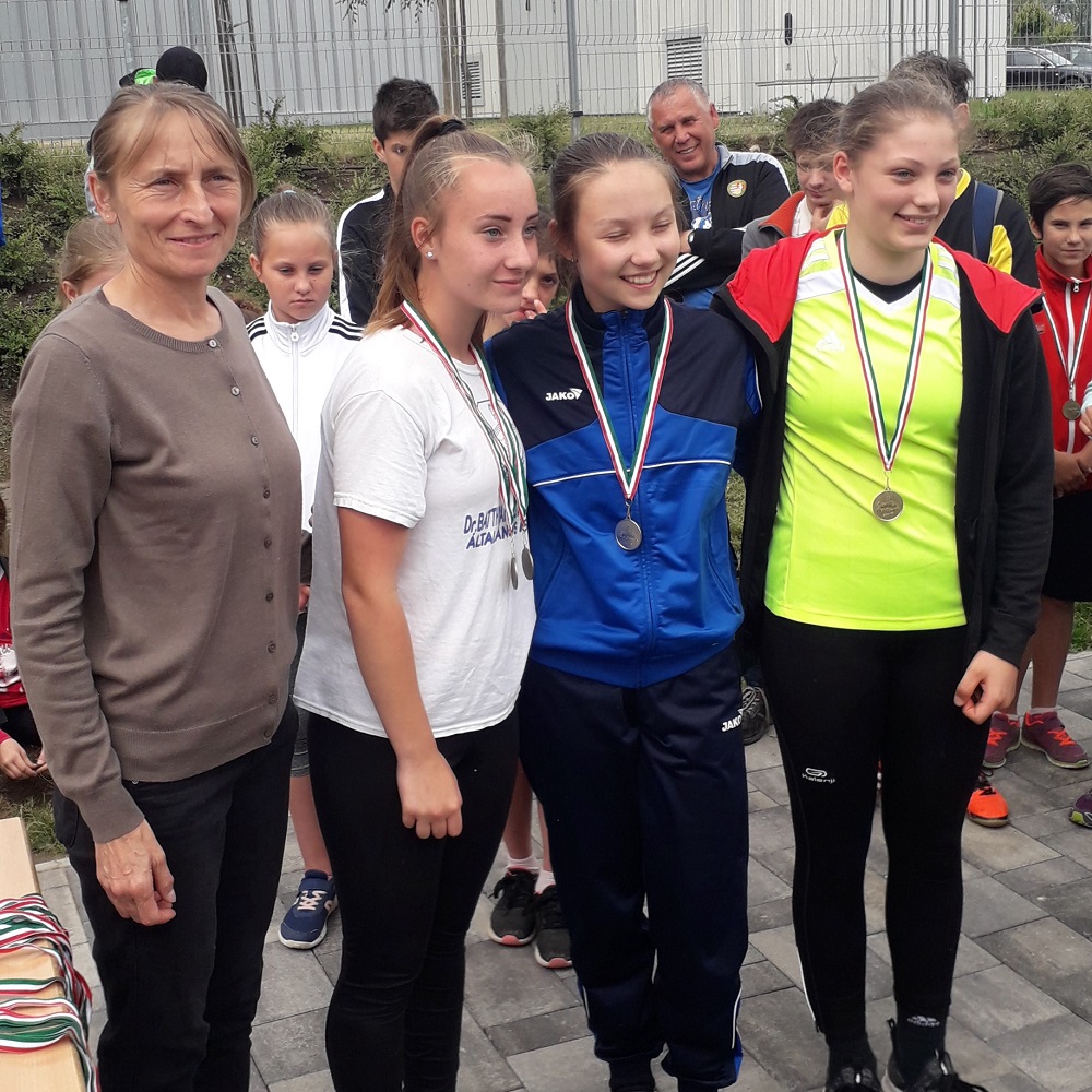 A dobogós helyezettek példaképüktől Földingné Nagy Judit 14-szeres magyar bajnok hosszútávfutó atlétától vehették át az érmeket