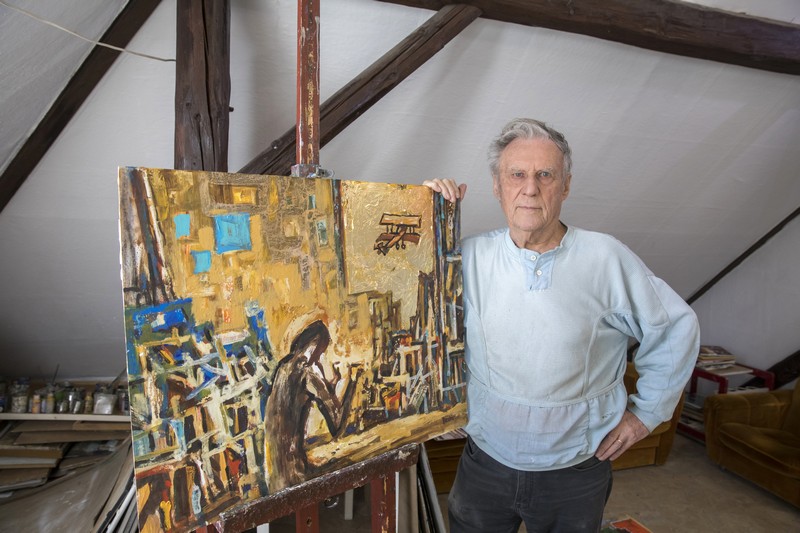 Igen, a kép címe is az, hogy Távozó. A fiam 45 éves korában bekövetkezett halálát már borzasztó volt elfogadni. Rövid alkotó élete során egész komoly életművet hagyott maga után. Káprázatos tehetség volt. Az Egy festőre emlékezve című képemet már csak jóval a halála után volt erőm megfesteni.