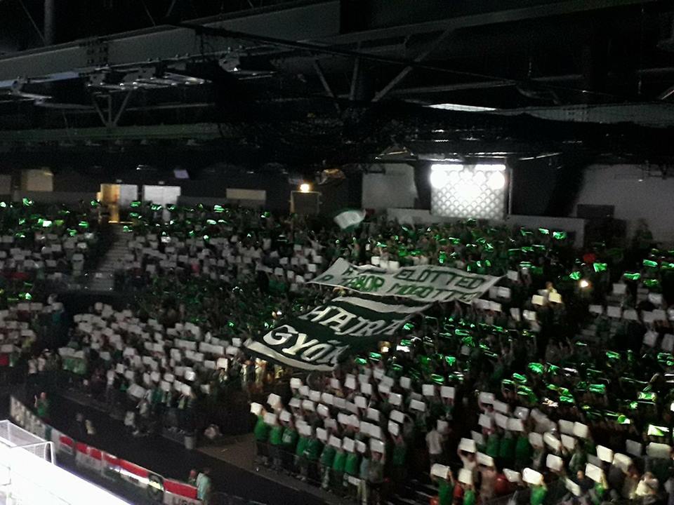 17.25: a székeken nem véletlenül láthatók fehér és zöld lapok: a szurkolói szövetség látványos koreográfiával készült és kér minden szurkolót, hogy ezeket emelje majd a magasba, ha jönnek a lányok!
