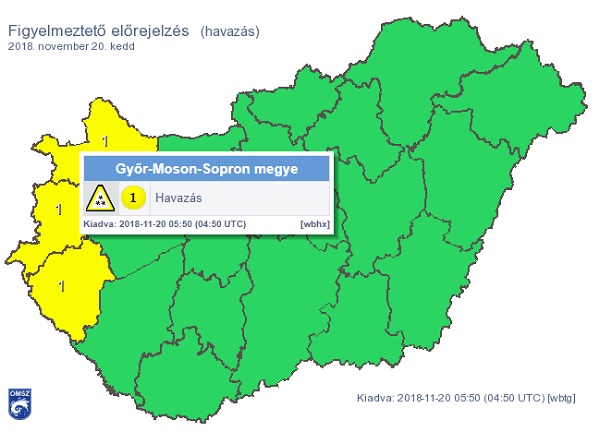 Három megyére, köztük Győr-Moson-Sopronra figyelmeztetést adott ki a meteorológiai szolgálat.