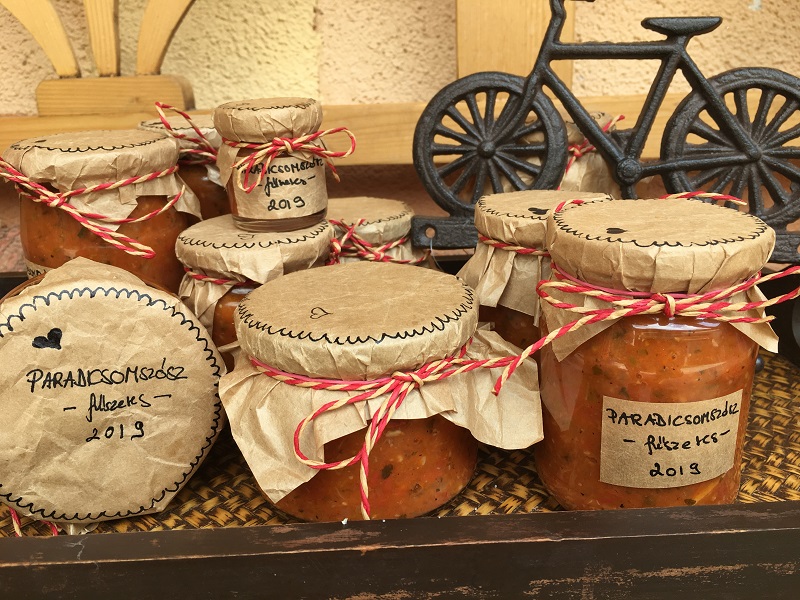 Tipp: A tartósítószer elhagyható, ha minden megtöltött üveg tetejére 1 ek olívaolajat töltünk, így a dunsztolással karöltve eláll több hónapig is.
