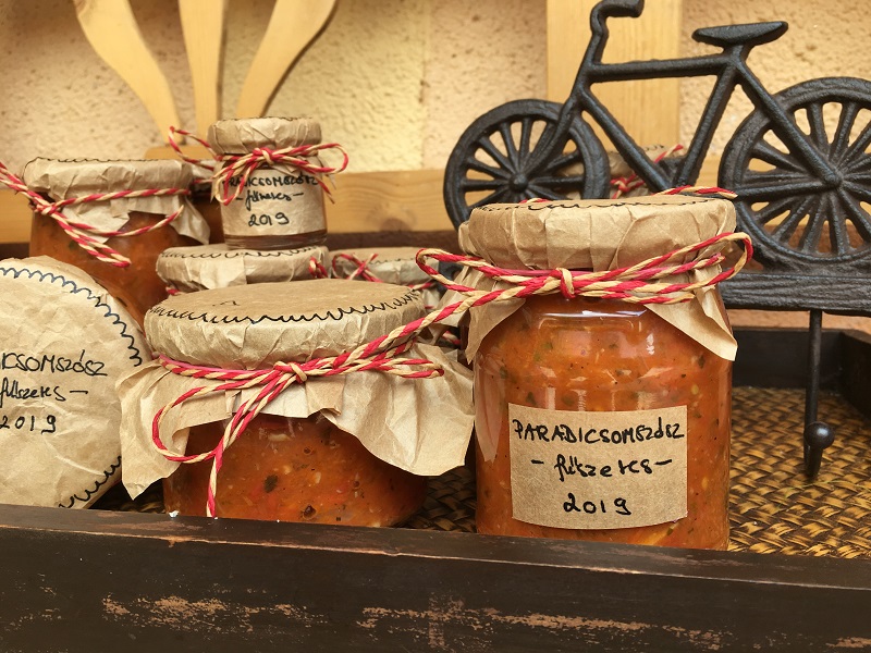 Tipp: A tartósítószer elhagyható, ha minden megtöltött üveg tetejére 1 ek olívaolajat töltünk, így a dunsztolással karöltve eláll több hónapig is.