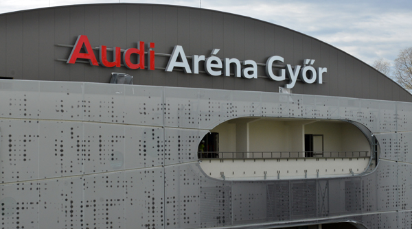 „Audi Aréna Győr” – már olvasható a felirat a multifunkcionális csarnok homlokzatán, ahol hamarosan koncertek, sportesemények várnak minket.
