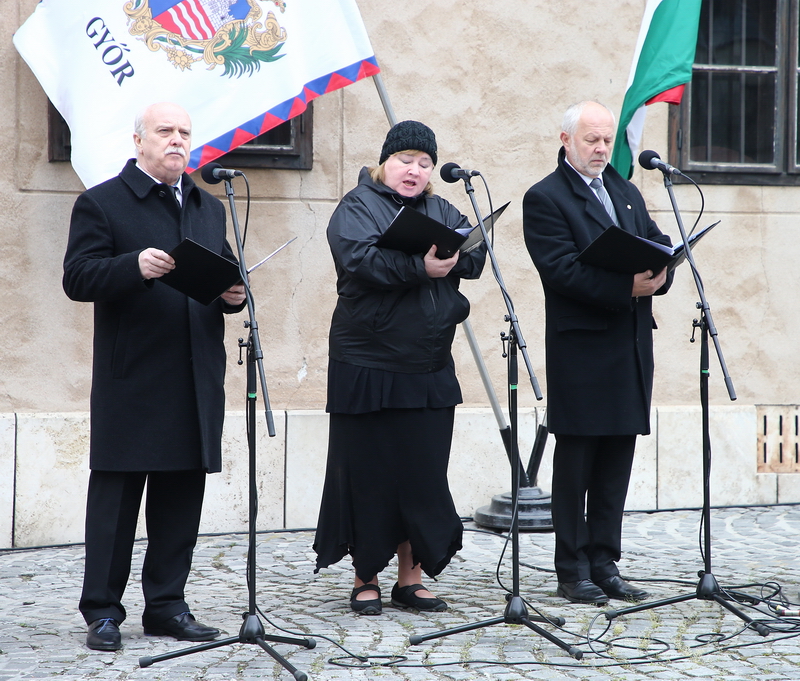 Az emléktábla leleplezését követően a Győri Nemzeti Színház művészei idézték fel a 75 évvel ezelőtti bombázás tragikus emlékeit.
