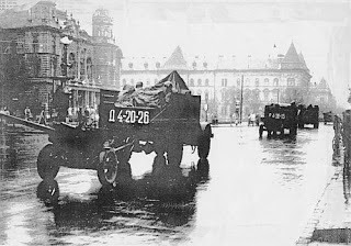 Mivel a tanktól nem tudtunk tovább jutni a Kisfaludy szobor irányába, a köz Király utcai oldalán mentünk ki a szoborhoz. Ott szintén egy T-54-es állt, járatta a motorját, undorító büdös füst áradt belőle. Csövével Bécs felé állt. Apámmal bejártuk a város főbb utcáit. Katonai teherautók, lövegek vonultak mindenfelé…