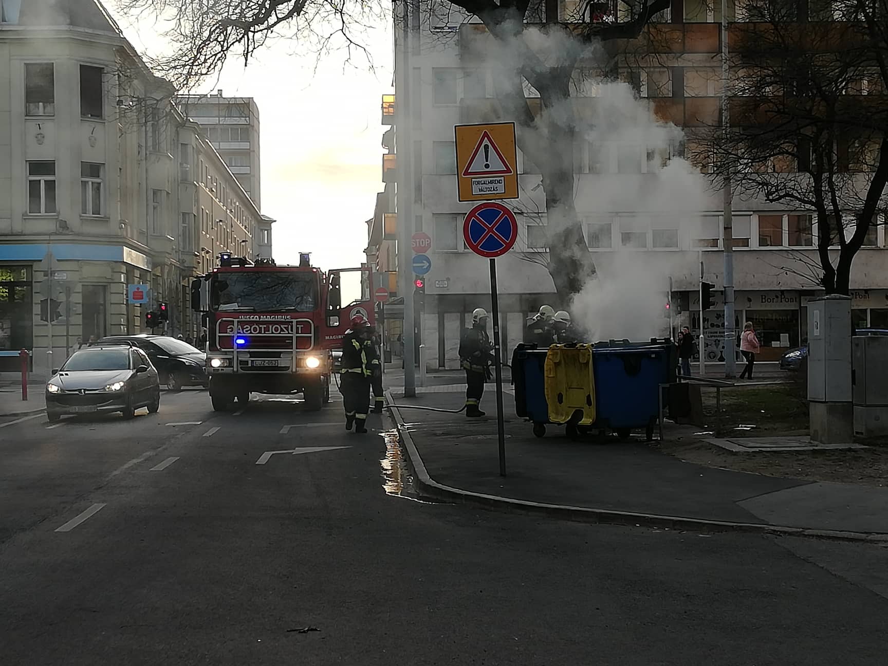 Az egyik hulladékgyűjtő edény az Árpád parkolóházzal szemben lévő szigeten gyulladt fel. A környéken található közterületi kameráknak köszönhetően azt is lehet tudni, hogyan történ az eset: a felvételeken látszik, hogy egy járókelő egyszerűen beledobja a cigarettacsikket a kukába – éppen a papír gyűjtésére szolgáló edénybe! Természetesen a parázs megtette hatását, hamarosan lángra kapott a papír, leégett az edény. Szerencsére nem csak felelőtlen, de segítőkész járókelők is akadnak, jó érzésű emberek értesítették a katasztrófavédőket, az égő kukát elhúzták a többi közeléből, illetve megkezdték a tűz oltását a parkolóházból hordott vízzel. Ezzel megakadályozták, hogy továbbterjedjen a tűz, és még nagyobb kár keletkezzen – köszönet a segítőkészségükért! Az oltási munkát a kiérkező tűzoltók fejezték be.