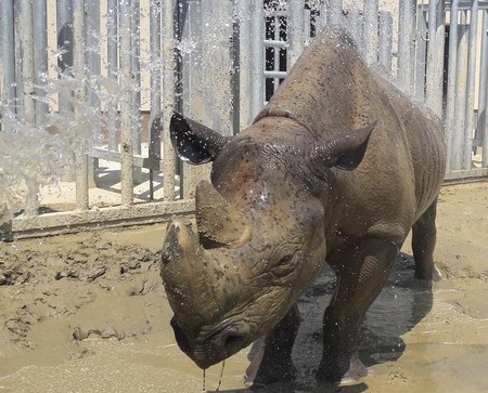Az állatkert orrszarvúi is nagyon szeretik a vizet. Egyik kedvenc elfoglaltságuk a dagonyázás. Az orrszarvú rendszeresen sárfürdőzik, így távolítja el bőréből az élősködőket, ugyanakkor hűti testét és megvédi magát a nap káros sugarai ellen. Most a kánikulában Mana, az orrszarvúhölgy is nagy örömmel fogadja, amikor gondozója slaggal locsolja. Az arcát és száját is a vízsugárba fordítja, hogy mindenhol érje a frissítő fürdő.