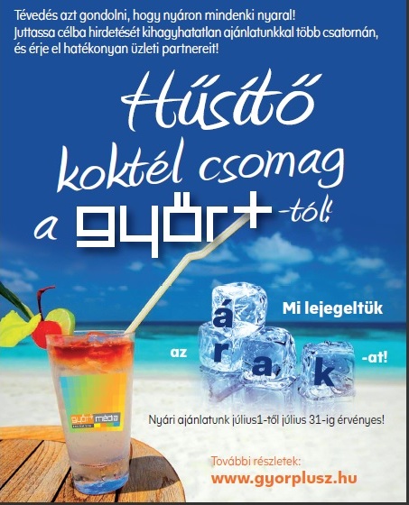 A csomag kedvezményes díja: 100.000 Ft + Áfa, amely tartalmaz 2db grafikai tervezést, 2db megjelenést a Győr+ hetilapban, rádió spot gyártást valamint 400 mp időtartamú rádióspot sugárzást a Győr+ FM 100, 1-n.