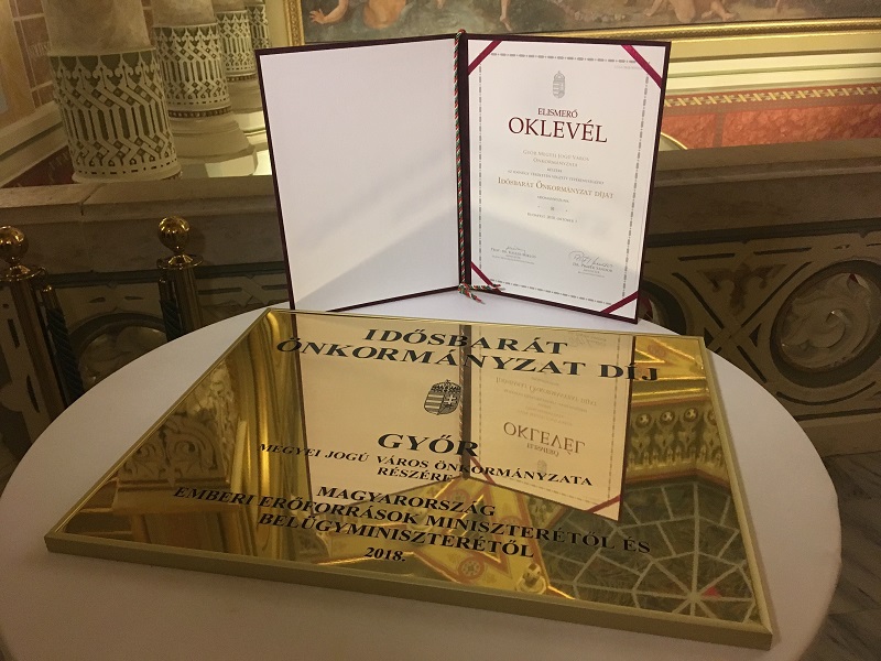 A győri önkormányzat 2010 után újra elnyerte az „Idősbarát Önkormányzat Díjat”. Az Emberi Erőforrások Minisztériuma és a Belügyminisztérium az idei évben 15. alkalommal ítélte oda a rangos elismerést. A pályázati felhívásra azok az önkormányzatok jelentkezhettek, amelyek a törvényben előírt kötelező feladataiknál többet tesznek az idősek életminőségének javításáért, közösségi életük fejlesztéséért és a generációk közötti együttműködésért.
