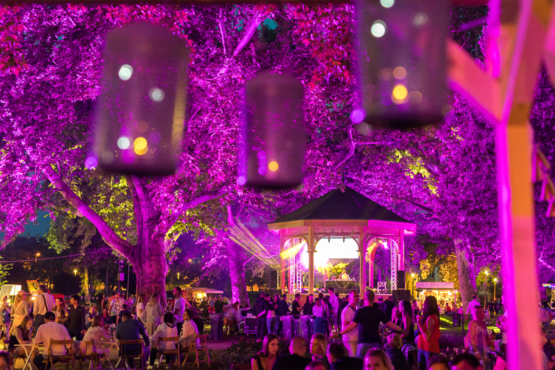 Szombaton indult a Stílusos ART Piknik Radó-szigeti kavalkádja, a helyszín, a jó idő, és a kitűnő hangulat pedig este sem engedte haza a rendezvény közönségét. A nappal zölden pompázó árnyas fák estére mesés színeket kaptak, így alakítva még különlegesebbé a belvárosi zöld területet.