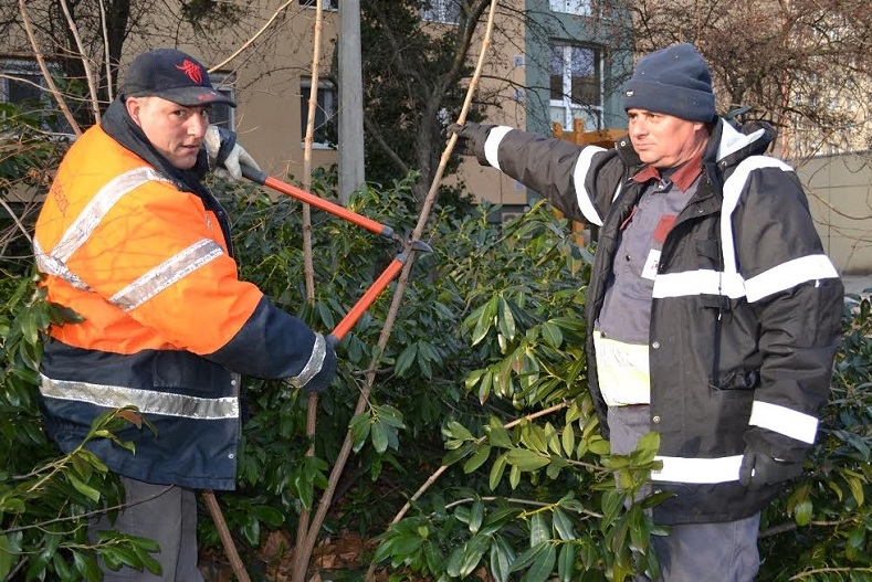 A cserjék szakszerű visszavágása mellett zajlik a városi faállomány gondozása is.