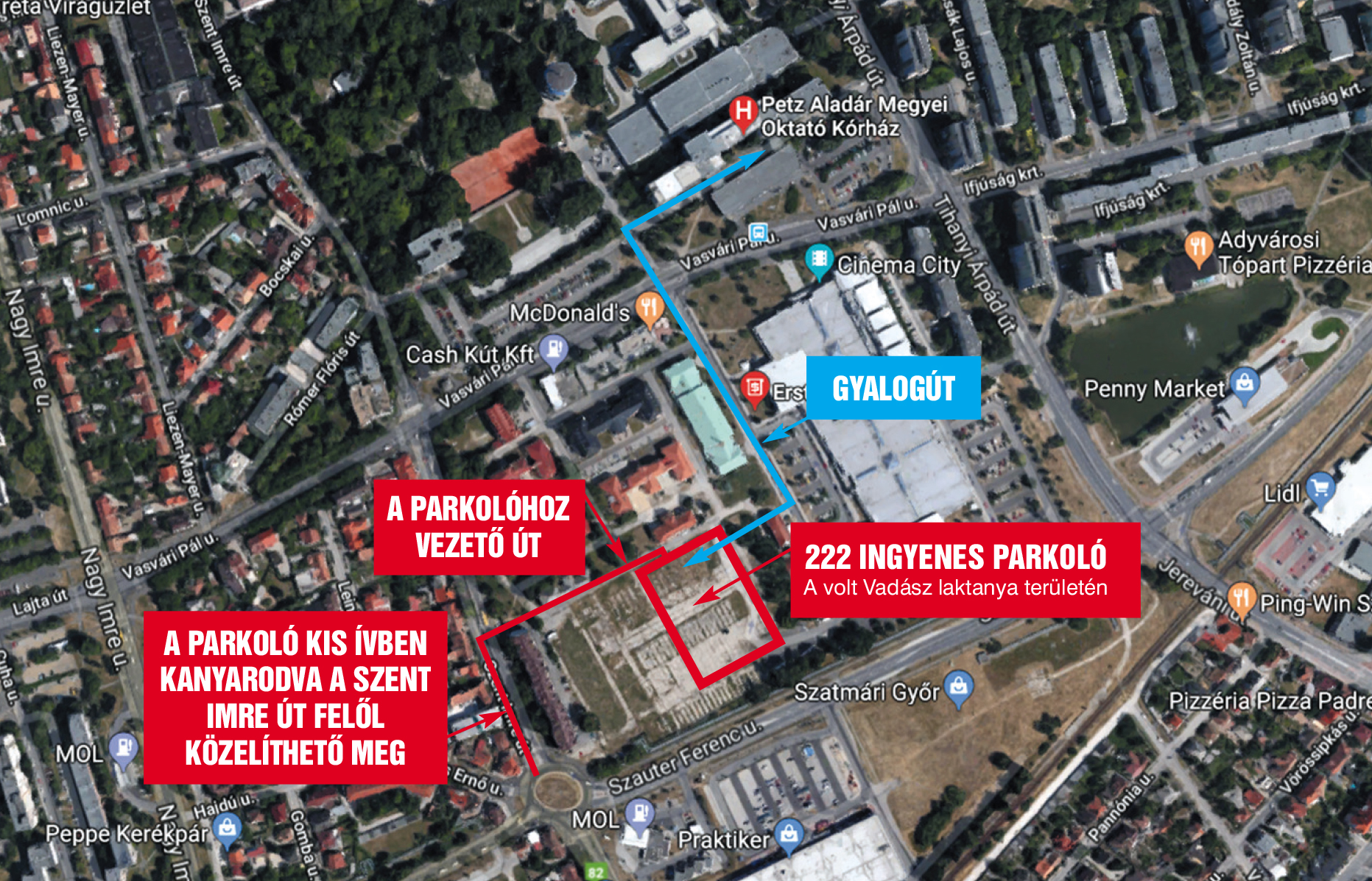 Korábban részletesen beszámoltunk a kórház parkolólemez kivitelezésének tervezett üteméről, amelyet néhány nappal korábban Borkai Zsolt polgármester ismertetett a Győrplusz Rádióban, facebook oldalán pedig a mostani cikkünk mellett is látható térképpel mutatta be az ideiglenes parkoló helyét. A Modern Városok Program győri fejlesztései ennek megfelelően hamarosan újabb fontos állomásához érkeznek, hiszen a jövő héten ismét egy jelentős beruházás indul. Az önkormányzat április 30-án átadja a munkaterületet a kivitelező WHB Kft-nek az egykori Vadász-laktanyánál, ahol megkezdődik a több mint 220 autót befogadni képes ideiglenes parkoló kialakítása.