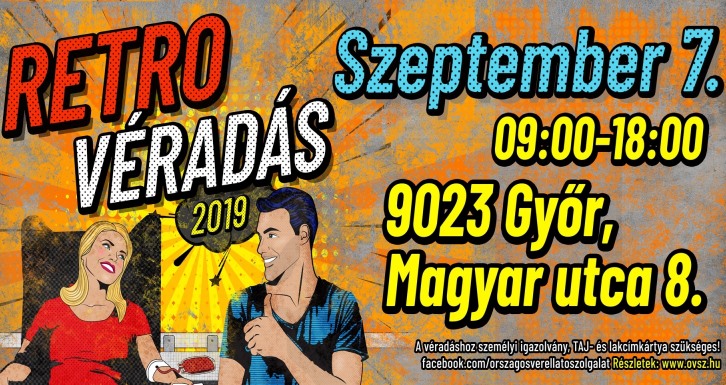 Természetesen ahogy fentebb is olvasható, Győrben is lesz Retro Véradás, szeptember 7-én a Magyar utca 8-as szám alatt várnak minden segíteni vágyót, 9-18 óra között.