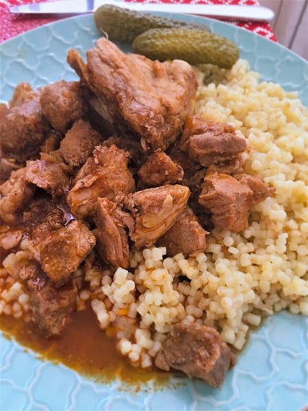 4. A tarhonyát szintén pirított, zsíros hagymán lepirítom, felöntöm vízzel vagy húslevessel és puhára főzöm fedő alatt 20 perc alatt.