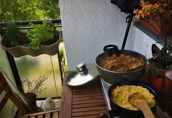Eljött a bográcsos időszak, amikor is a már emlegetett pörköltfőző, halászléfőző, gulyásfőző versenyek majdnem minden fesztiválon megtalálhatók. Kert és fesztivál hiányában sincs kifogás, hiszen bármi megoldható egy erkélyen is, ahogy a képen látható. Több véleménykutatást végeztem már a jó pörkölt alapjáról, de azért mindenki más ízléssel főz. Nálam kialakult egy sor, amiből nem engedek a főzés során. Nyilvánvalóan csak olyan emberek főznek velem, akik a fűszerezési habitusommal egyet értenek, ezért túl nagy csatákat eddig nem vívtam. Íme az elhagyhatatlan kellékei egy szerintem tökéletes sertéspörköltnek: túlzott mennyiségű hagyma, fokhagyma, szalonna, paprika, paradicsom, rozmaring, babérlevél, bor, csontos hús, cukor. Én azt gondolom, hogy ha ezek kellő időben, lepirítva egy pörköltbe kerülnek, nincs más dolgunk csak lassan főzve kivárjuk, hogy elnyerjük a fődíjat.
