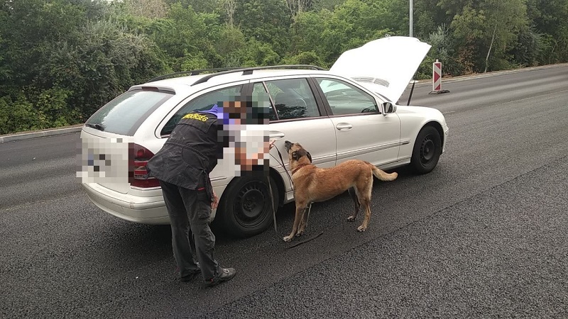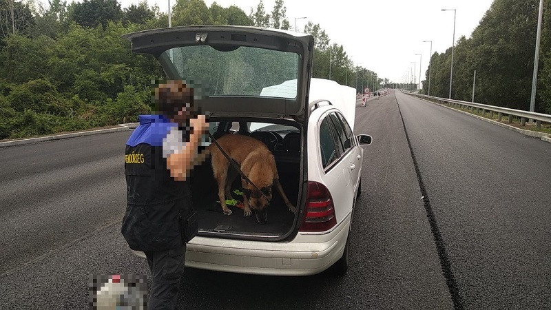 A járőrök Győrben az 1-es számú főúton igazoltatták egy autó vezetőjét augusztus 2-án 15 óra 10 perckor, aki kanyarodása előtt irányváltoztatási szándékát nem jelezte. Az ellenőrzés során a sofőr zavartan viselkedett. Az egyenruhásoknak egy tasakot adott át azzal, hogy az marihuánát tartalmaz, illetve elismerte, hogy kábítószert fogyasztott, ezért átvizsgálták ruházatát, valamint a járművet is. A rendőrök és a szolgálati eb a gépkocsiban egy nejlonban bruttó 411,4 gramm kábítószergyanús fehér port, bruttó 14,5 gramm növényi származékot, illetve egy üres fecskendőt, a férfi ruházatában pedig egy, ugyancsak kábítószergyanús anyaggal töltött fecskendőt találtak. A gépjármű sofőrjét a helyi rendőrkapitányságra előállították, ahol a vele szemben alkalmazott drogteszt pozitív értéket mutatott. Az intézkedők azt is megállapították, hogy a 30 éves écsi lakos a járművet eltiltás hatálya alatt vezette.
