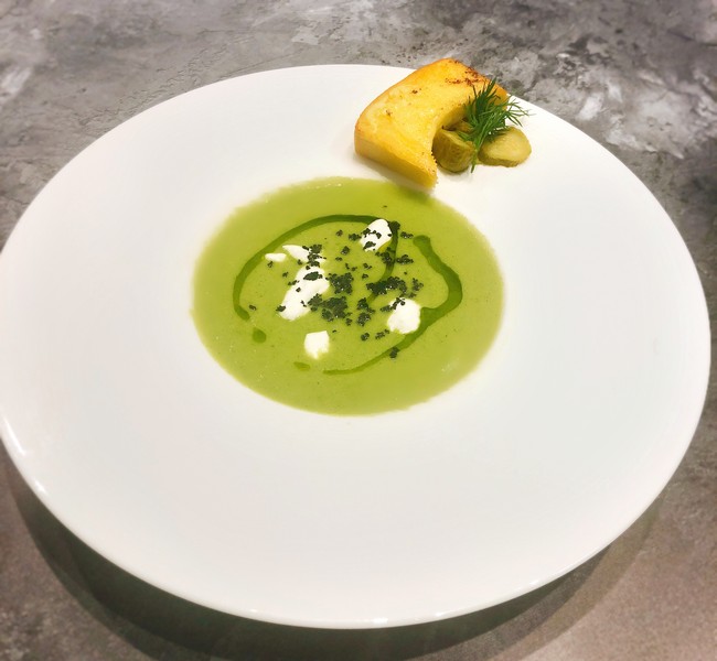 Kovászosuborka-krémleves, grillezett mozzarellával