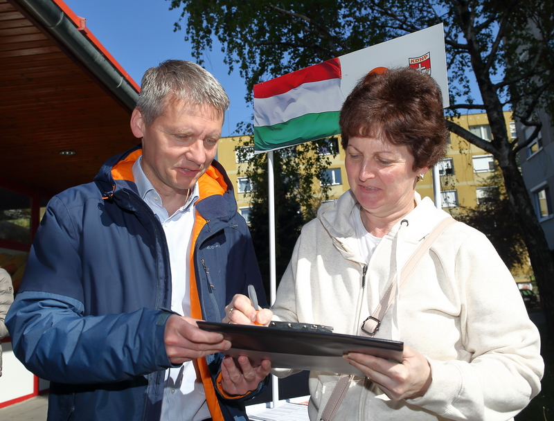 Az Ifjúság körút egyik áruháza előtt is gyűjtött aláírásokat a Fidesz–KDNP. Fiatal aktivisták szólaltatták meg az embereket.
