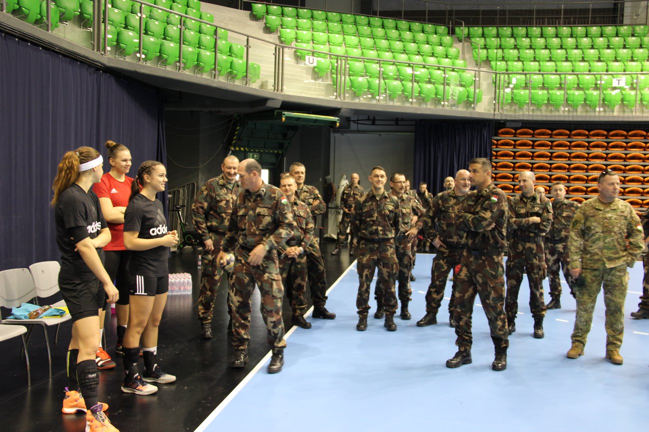 Az Arénában nem éppen megszokott viselet a katonai egyenruha, ám a múlt héten mégis terepszínű ruhás emberek lepték el a létesítménny és a Győri Audi ETO KC edzését. Aggodalomra semmi ok, csupán a városunkban megtartott vezénylő zászlósi továbbképzés résztvevői látogatták meg a lányokat.