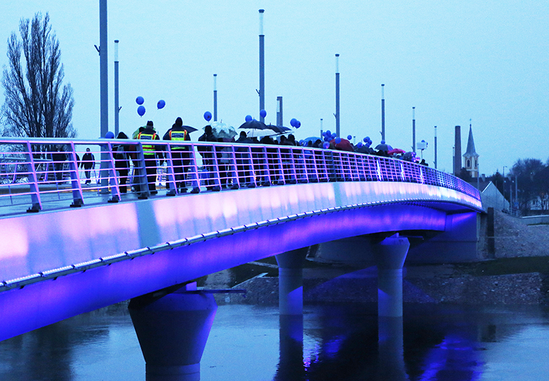 A Márton Lakóotthon – Híd a jövőbe Alapítvány támogatásával rendezett Autizmus Világnapi program célja, hogy minél többen értesüljenek arról, hogy az autizmussal élő gyermekek száma világszerte növekedést mutat. Ma minden 100. gyermek autizmussal születik és autizmussal éli le az életét. A séta találkozási pontján információs anyagokat adnak az autizmusról, kézműves vásár lesz érintett fiatalok munkáiból. A séta közben rövid pihenőt tartanak és meghallgatják a Suddenly trió jazz műsorát. Ezen a napon világszerte kékre világítják a nevezetes épületeket, Győrben a Jedlik-híd kap kék világítást. A kék séta fővédnöke Bolla Péter kabinetfőnök.