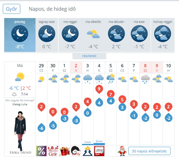 Északon időnként élénk lesz a keleties szél. A hideg hajnal után napközben -4 és +2 fok közötti értékeket mérhetünk.