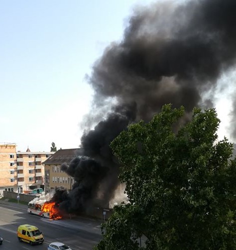 Kigyulladt egy busz csütörtök délután Győr belvárosában.