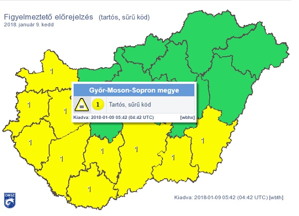 A tartós sűrű köd miatt figyelmeztetést adott ki megyénkre a meteorológiai szolgálat.