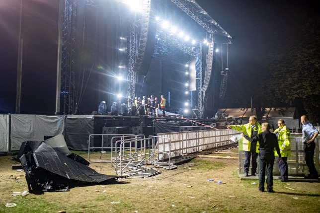 A rendkívüli szeles és esős időjárás miatt összedőlt a színpad egy része a Casper és Marteria rapegyüttes szabadtéri koncertjén szombaton a németországi Essenben, mintegy harmincan megsérültek, ketten súlyosan - közölte a helyi tűzoltóság.