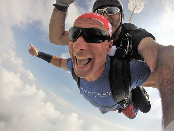 Bár tériszonya van, kipróbálta az ejtőernyőzést is.