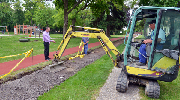 A tavaly elkészült győr-ménfőcsanaki rekortán borítású futópálya körül munkagépek dolgoznak, a lakók kérése ugyanis megoldódik a közvilágítás problémája is.