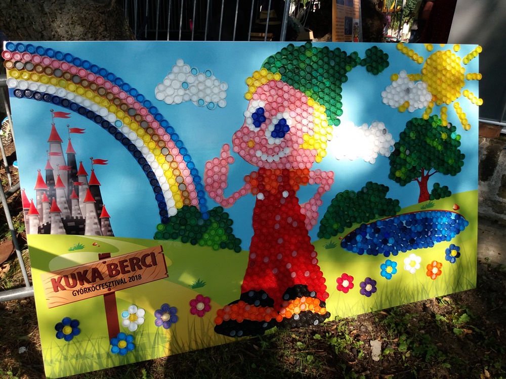 Kuka Berci egyébként minden évben kitalál valami újítást, nem kis fejtörést okozva ezzel segítőnek. Idén egy képet álmodott meg, amelyen persze hogy ő is szerepel 🙂 A kép pedig attól válik különlegessé, hogy műanyag kupakok felragasztásával lesz igazán élethű és eredeti. A felragasztásban a gyermekek jeleskedhetnek, s ahogy a első nap mutatta: roppant népszerű a feladat, s tetszetős az elkészült alkotás.