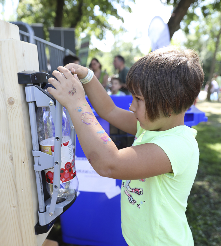 Igazi újdonság a Nagy palackprés, a magukkal hozott üveg összepréselése és szelektív elhelyezése után újabb ajándékot választhatnak a kicsik és nagyobbak. Persze ha nincs otthon ilyen palackprés, akkor se keseredjen el senki! Ugyanúgy praktikus, ha alaposan összetapossuk a kiürült üvegeket, s így visszük el valamelyik gyűjtőszigetre, a megfelelő konténerbe bedobva azt.