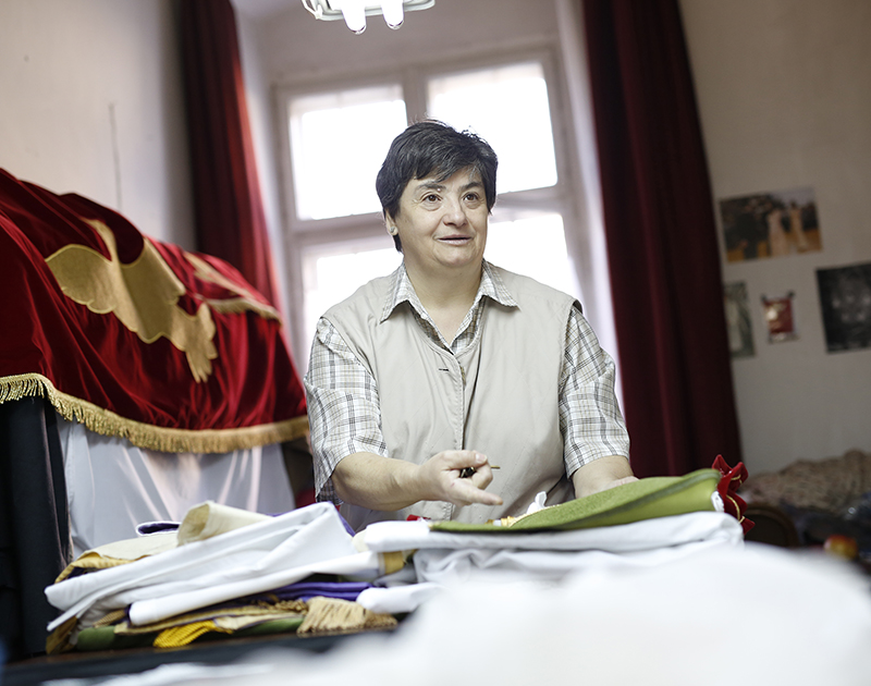 Farkas Lászlóné azt meséli, az evangélikus gyülekezet aktív tagja, lánya és veje is lelkész, amikor tíz évvel ezelőtt lehetősége adódott erre a feladatra, örömmel vállalta. Azt mondja, ajándéknak tekinti, hogy azt csinálhatja, amiben igazán örömét leli, varrhat és hímezhet.