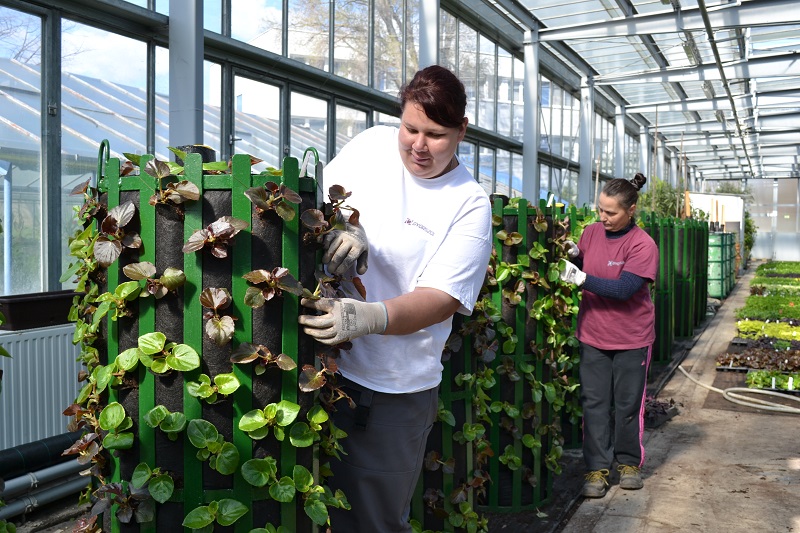 szakemberek a városi élet sajátosságait jól tűrő, az előző években bevált fajtákat, így begóniát, futómuskátlit és díszburgonyát ültetnek a tőzegalapú földkeverékbe. A kertészek ápolják, öntözik és tápoldatozzák a most még fiatal növényeket.