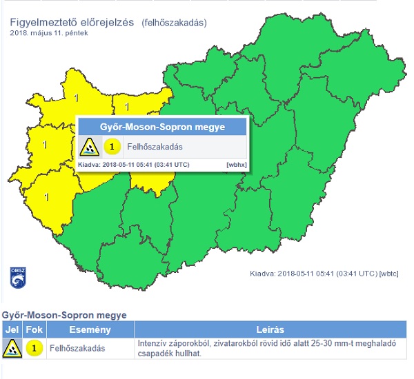 Intenzív záporokból, zivatarokból rövid idő alatt 25-30 mm-t meghaladó csapadék hullhat. Péntekre is figyelmeztetést adott ki a meteorológiai szolgálat.