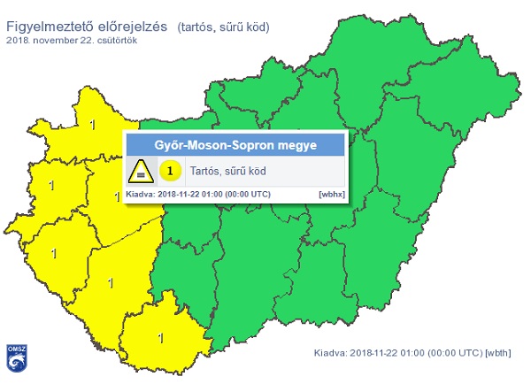 A tartós, sűrű köd miatt mára is figyelmeztetést adott ki megyénkre a meteorológiai szolgálat.