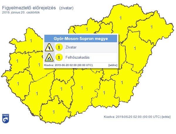 Csütörtökre is országos figyelmeztetés érvényes a felhőszakadás miatt.