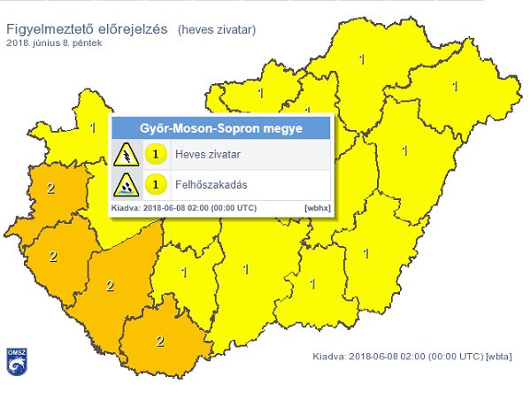 Eleinte főleg északkeleten, délutántól pedig inkább nyugaton számíthatunk záporra, zivatarra, helyenként jégeső és felhőszakadás is lehet. Emiatt jelenleg az ország kétharmadán elsőfokú riasztás érvényes, de a figyelmeztetés az egész országra kiterjed.