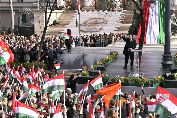 Március 15. a nemzeti egység ígérete, “legyen béke, szabadság és egyetértés” – így kezdődik a 12 pont -, arra emlékeztet, “a hétköznapi könyöklés és hétköznapi szócsaták fölött legyen egy közös cél, egy nemzeti, amely összetart bennünket” – jelentette ki Orbán Viktor.