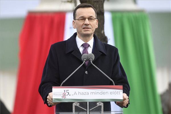 Lengyelország és Magyarország újra együtt harcol a jövőjéért, és ahogy 1848-’49-ben most is az igazság, a szolidaritás és az egyenjogúság oldalán áll – mondta Mateusz Morawiecki lengyel miniszterelnök pénteken a Múzeumkertben, a március 15-ei nemzeti ünnep alkalmából rendezett állami rendezvényen.