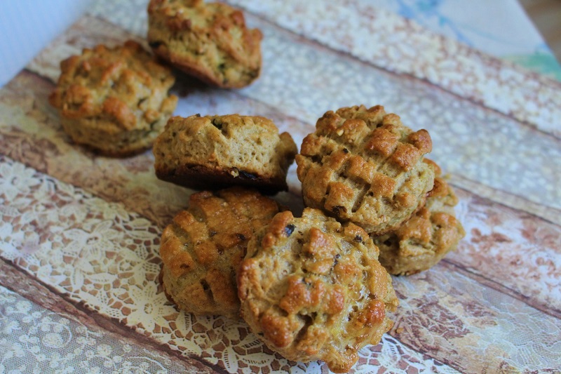 7. Sütőpapíros tepsire rakom őket, lekenem tojással, megszórhatom magvakkal és 25 percig sütök egy adagot.