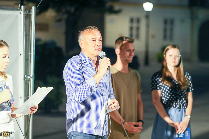 Kedden este sötétedés után különös fények, titokzatos hangulat uralkodott a Bécsi kapu téren, az egykori Vaskakas taverna épülete körül. Ekkor mutatták be ugyanis a 31! – 3 folyó 1 sziget, összművészeti fesztivál idei programját.