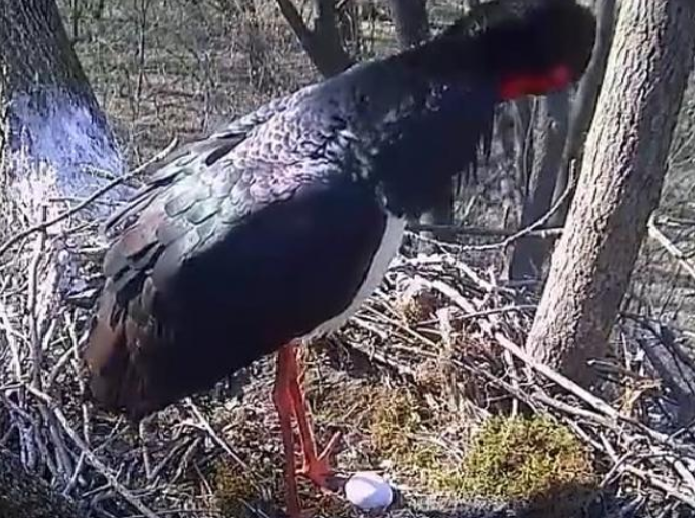 Megjelent az első tojás csütörtökön a gemenci feketególya-pár bekamerázott fészkében.