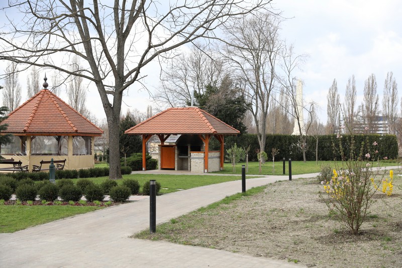 Az épületből kilépve a várkertben is tehettünk egy rövid sétát, amely az utóbbi években megújult, szökőkút, sétányok, rózsalugas, virágok díszítik, teszik békéssé, barátságossá.