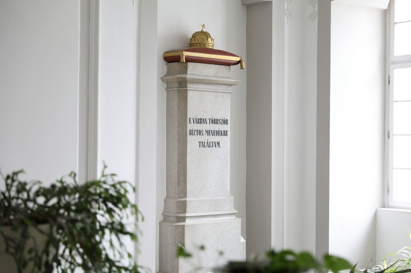 Hazánk egyik legszentebb ereklyéje, a Szent Korona többször is megfordult a győri Püspökvárban. Először 1440 májusában, amikor Erzsébet királyné és a gyermek V. László király Benedek győri püspök jóvoltából a székesfehérvári koronázás után itt talált menedéket. A 17–18. században a Szent Koronát az új koronázó város, Pozsony középkori várában őrizték. Azonban kevésbé ismert, hogy a 1600-as évek első felében, az állandósult török háborúk és az erdélyi fejedelmek meg-megújuló támadásai miatt több alkalommal (1640, 1645–1647) is a biztonságosabb győri várba menekítették. II. József halálát követően az akkor Bécsben őrzött koronát Budára szállították.
